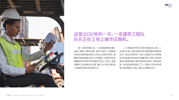 ·由包含云、扩展现实、区块链、人工智能、数字孪生、智能对象(包括汽车和工厂)以及边缘计算等在内的多种技术群组成。
