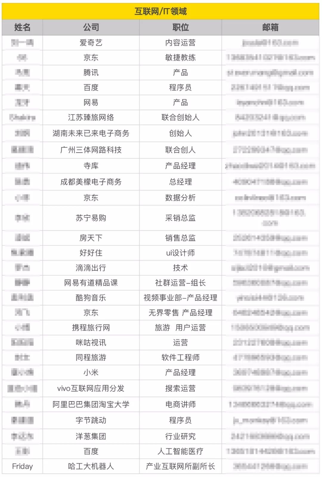 它由36氪高忠诚度和参与度的核心用户构成,在前期学员中,不仅集结了来自阿里、腾讯、字节跳动、京东、小米等知名互联网企业的优秀学员,还有来自通信、咨询、教育、传媒、金融、零售、贸易、快消品等行业的学员。帮助你实现职场跃迁,让你与优秀的人,并肩作战、一同前行。