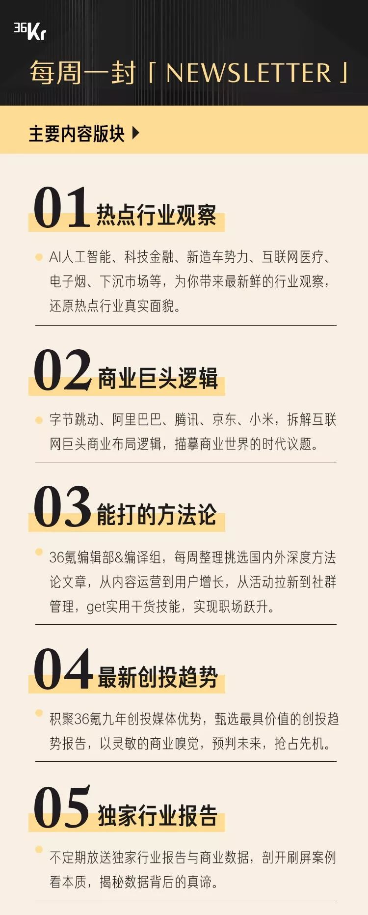 简单地说,就是:每周一封Newsletter + 36氪终身社群。