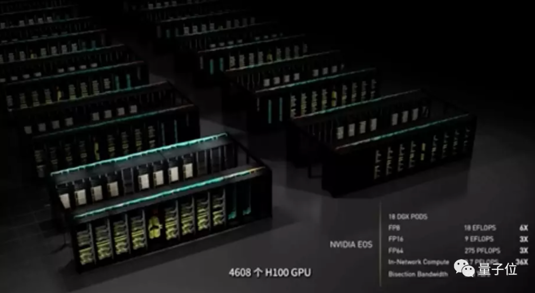 这台超算配备了576个DGX H100系统,直接用了4608块H100。