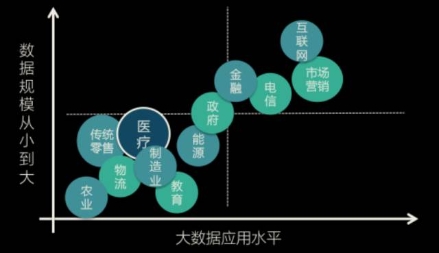 医疗是数据密集型产业,数据的来源非常丰富,包括临床数据、医疗检测数据、患者数据、医保数据、药厂数据、医疗设备数据等等。但是在大数据应用水平上,医疗行业远远落后于互联网、金融、电信等信息化程度较好的行业。姑且不论不同医疗机构之间的数据集成,即使是同一家医院临床、化验、放射、药房等不同部门之间的数据互通都还是奢望。
