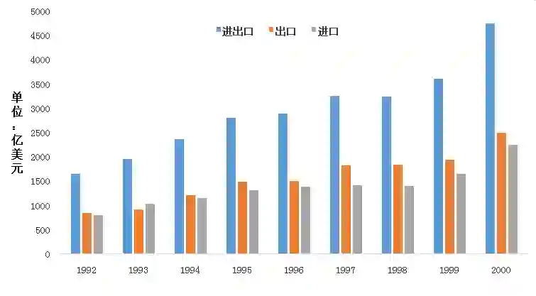 1999~2009:中国加入WTO,对外出口和贸易一路攀升;