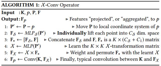 ,其中 Conv(·,·) 就是在元素层面进行求积后再求和。在 (ii)、(iii) 和 (iv) 中,这些点是从局部近邻中采样得到的,因此可以是任意顺序。通过遵循如图给出的顺序,输入特征集 F 可以被投射进
