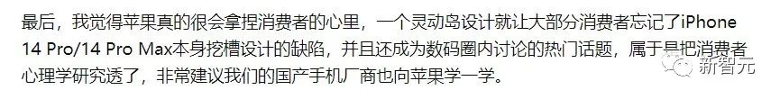而科技数码答主「略懂的老董」表示,灵动岛这个设计体现出一股丝滑的「果味」,靠一个灵动岛设计,就让人忘记了挖槽设计的缺陷,属实是把果粉们「拿捏」了。