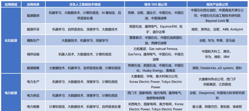 其他周边场景:由于能源针对人工智能应用的场景极为复杂,故本报告并未囊括如新能源,清洁能源等相关业内热门场景。