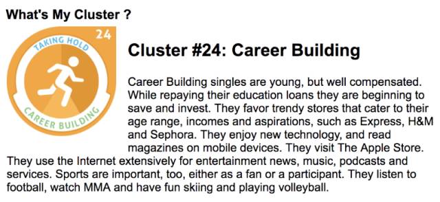实际上,你只需要在 Acxiom 的「我属于哪个聚类?」工具中回答几个简单问题,你就能知道你个人属于哪个聚类,体验地址: