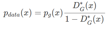 我们对它进行一点微小的变换:这个形式厉害之处在于,尽管我们没有完美的G,但是仍然可以通过对Pg赋予权重来得到真实的分布,这个比例就是如图所示,基于该G的最优D和(1-D)之比。当然我们很难得到最优的D,但我们训练的D越接近最优D,bias越低。而训练D(标准二分类器)要比G简单得多,因为G的目标函数是一个会随着D变动而变动的目标。