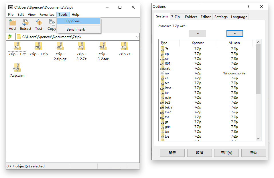 修改 7-Zip 的关联文件和压缩包在资源管理器中的图标