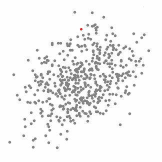 当圆圈到达目标质心后,它发现自己无论朝哪个方向漂移都找不到更多的数据点,这时我们就认为它已经处于最密集的区域。