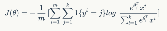 对于多分类的逻辑回归算法,通常我们使用Softmax作为输出层映射,其对应的损失函数也叫交叉熵,只不过写法有点区别,具体如下: