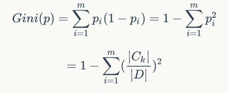 基尼系数是决策树CART算法引入的划分特征准则,其提出的目的不是为了克服上面算法存在的问题,而主要考虑的是计算快速性、高效性,这种性质使得CART二叉树的生成非常高效。其公式如下: