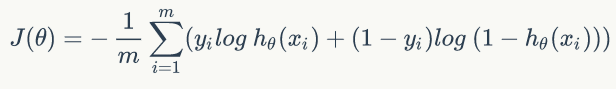 由于交叉熵在逻辑回归中应用广泛,这里给出其定义式,使读者知道交叉熵的具体应用。逻辑回归算法的损失函数就是交叉熵,也叫做负对数似然,其定义为: