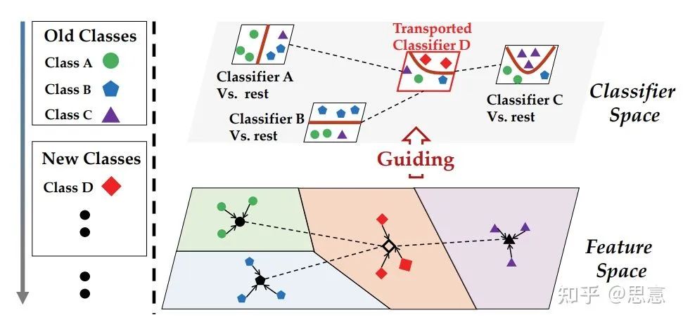 为了更好地提取特征,DER另外使用了一个辅助分类器,仅仅使用新的特征,并要求新的特征空间能够良好的实现新类之间的辨别。而对于所有的旧类样本,辅助分类器会将他们分类到同一个标签上面。