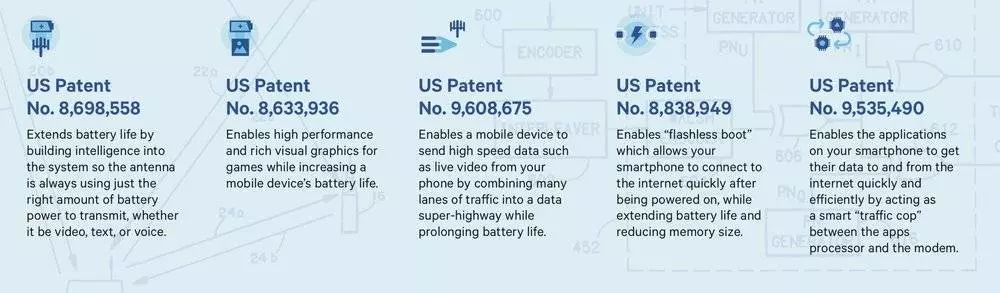 高通作为“杠杆工具”的部分专利。图片来源:Qualcomm。