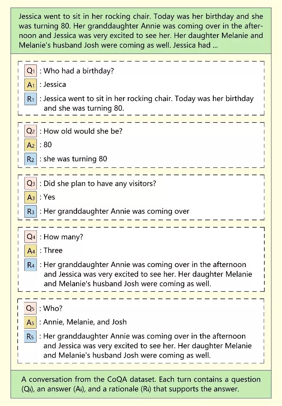 CoQA数据集中的一组对话,CoQA论文参见 https://arxiv.org/abs/1808.07042