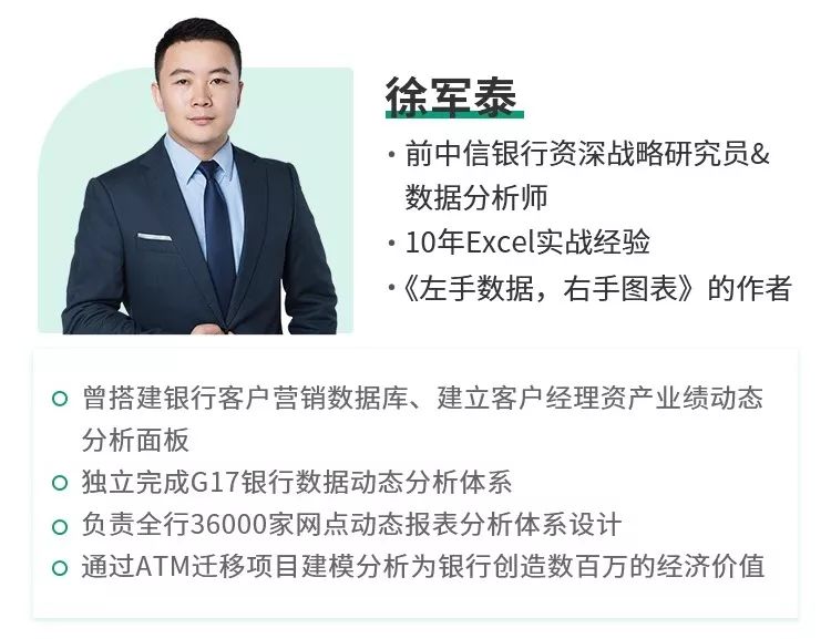这次我们请来了10年经验Excel名师——@徐军泰老师,为大家带来一门超级实用的系统的《21天Excel实战训练营》!