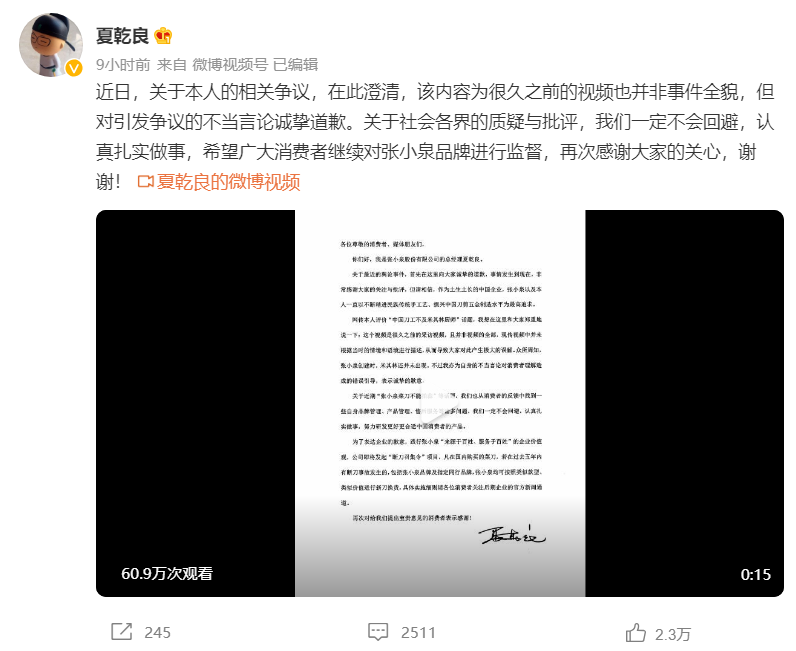 【张小泉总经理道歉:网传视频有语境被误解】张小泉总经理夏乾良道歉,表示网传其评价“中国刀工不及米其林厨师”是很久之前的采访视频,且并非视频的全部,现传视频并未根据当时的情境和语境进行描述,从而导致大家误解。张小泉即将发起“断刀召集令”项目,若在过去五年内有断刀事故发生,均可进行新刀换货。(澎湃新闻)