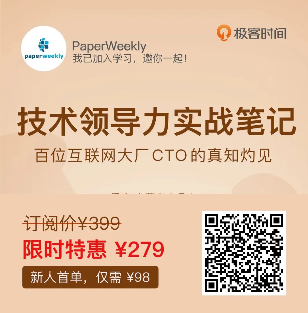 如果你也有类似的困惑,推荐我的“通勤读物”《技术领导力实战笔记》专栏给你,没有人生来就会当领导,每个坐在这个位置上的人,都是摸着石头过河。这个专栏就是阿里、腾讯、京东、AWS 等上百家知名互联网公司的技术领导者、CEO 们的成功经验与血泪史。