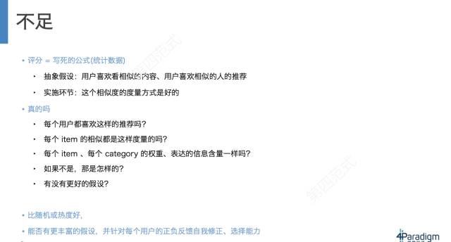 但是这些方式一定是比随机要好的,毕竟有一定道理。但是最好的情况还是,我有一个更丰富的选择和假设,每个用户有自己的行为逻辑,让评分的方式能够捕捉到他,并且根据每个用户喜欢什么不喜欢什么,自己能够去进行修正和反馈。