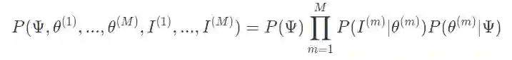 BPL 方法学习简单的随机程序以表示概念,通过各部分、子部分和空间关系 [1] 来组合式地构建它们。关于类型 Ψ、该类型的 M 个 toke θ(1),...,θ(M) 和对应图像 I(1),...,I(M) 的联合分布可以被表示为: