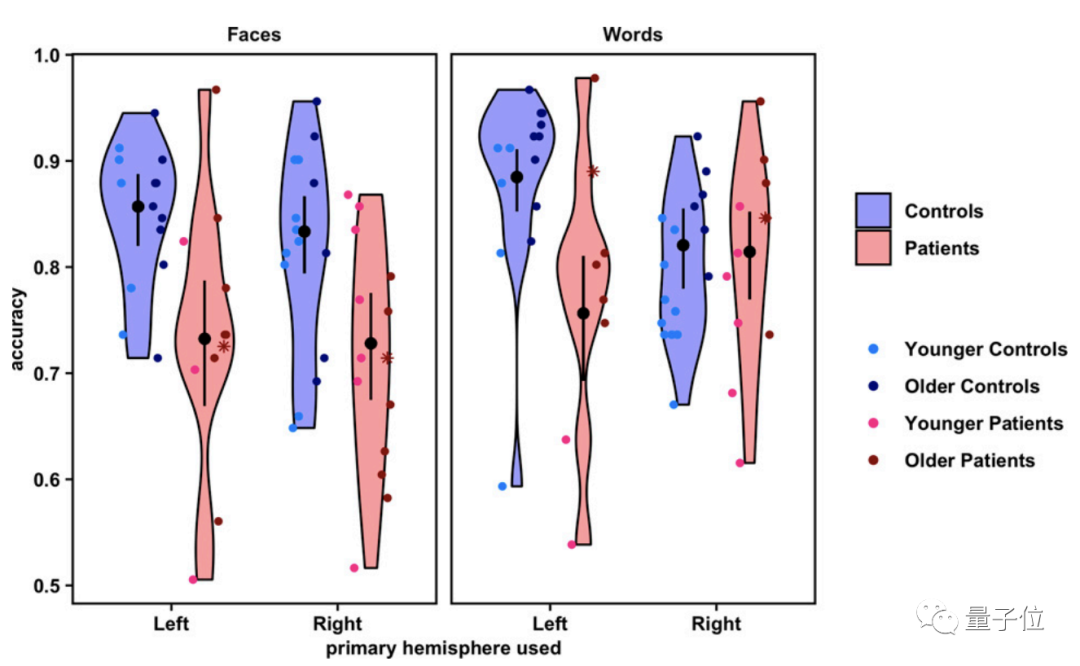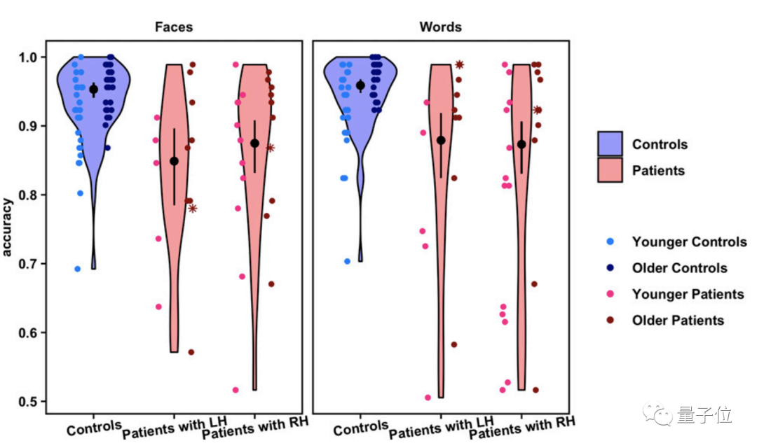 不过患者与正常人在这些任务上的平均准确率差异不超过10%,而且患者的准确率也达到了80%以上。