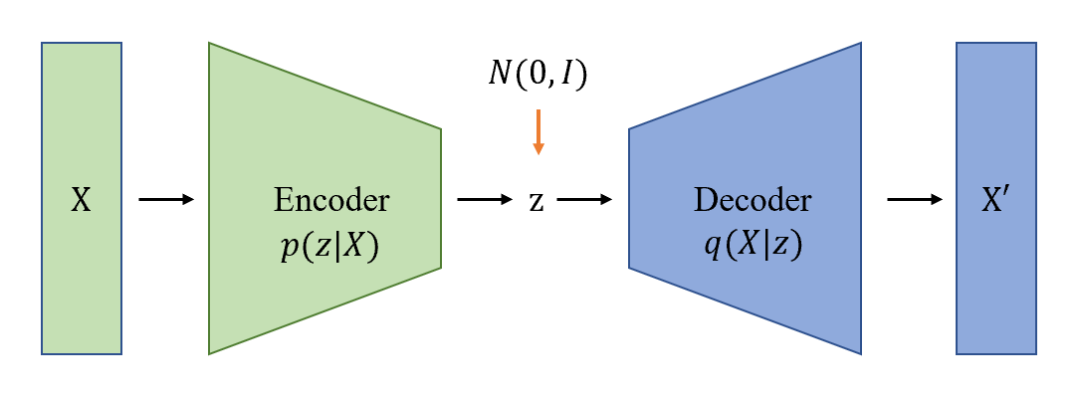 变分自动编码机(Variational Auto Encoder,VAE)则是在 AE 的基础上,对隐变量