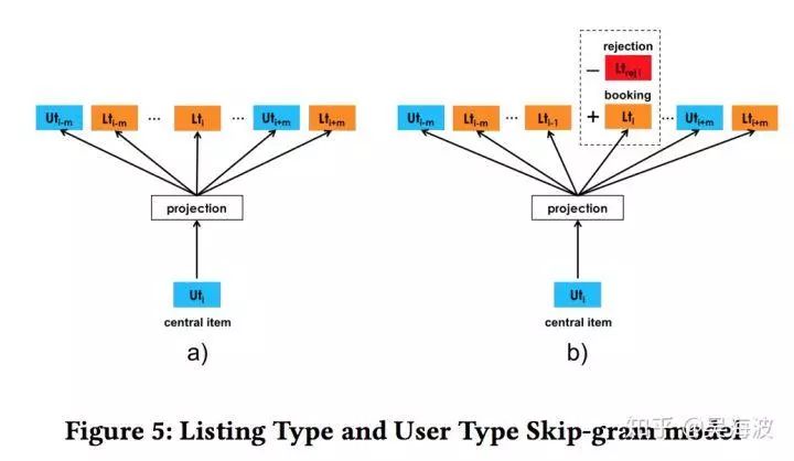 一般情况下,我们直接用 Word2vec,效果就挺好。论文作者根据 Airbnb 的业务特点,做了点改造,主要集中在目标函数的细节上,比较出彩。先来看一张图:
