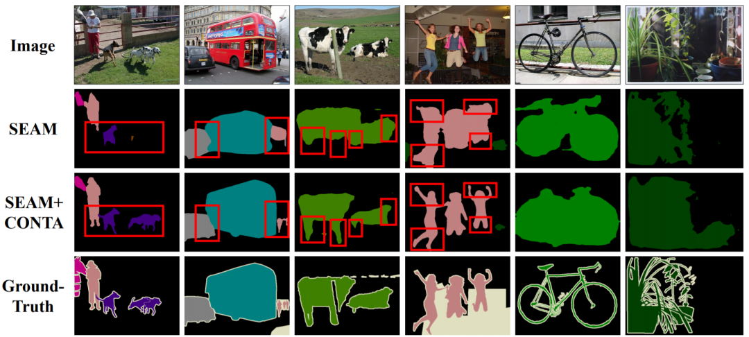 可以看到在CONTA的帮助下,原本一些错误分割的目标可以被准确的分割,比如“狗”。
