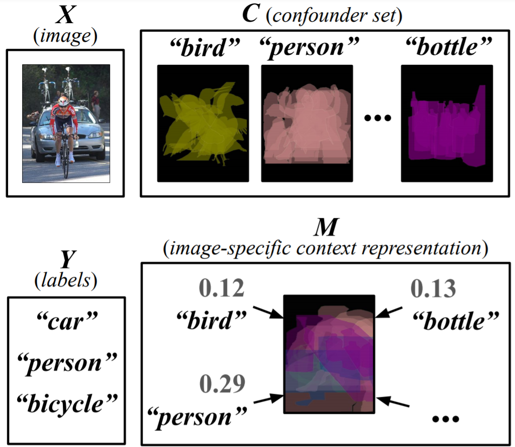 图3就是我们提出的结构化因果关系图,其中C是数据集的上下文先验,X是输入图像,Y是图像对应的类别标签,M被认为是X在上下文先验C下的一个具体的表示。至于为什么这四个components之间的因果关系可以这么表示,以及各个component之间的具体的关系,大家可以去查看我们的论文 Section 3.1,里面有详细的解释。另外,关于因果关系的一些背景知识,建议大家可以参考[1,2]。