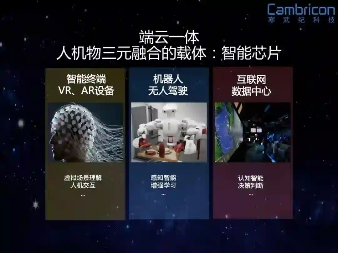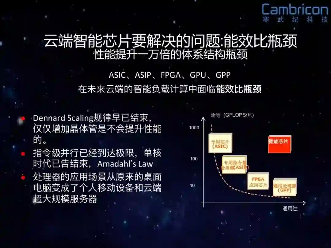 未来十年大家希望是把智能芯片的速度和性能功耗比至少提升1万倍以上,才能把现在相当于人脑规模的计算能力浓缩到类似手机大小的终端设备里。