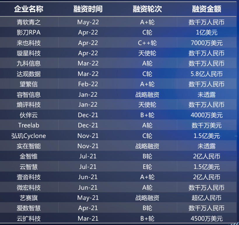 36氪敏锐地捕捉到了超自动化行业相关趋势,已连续发布《RPA x 流程挖掘:2022第一个企服风口》、《被SAP、IBM、微软盯上的流程挖掘,能长出中国独角兽吗?》、《对标Celonis,企业级执行管理平台「璇星科技」获红杉中国种子基金数千万元天使轮融资》、《一年3轮累计亿元融资,望繁信科技再下一城》等稿件,为读者系统性呈现行业现状。