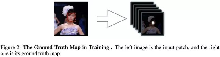 第一个通道ground truth map的正标签区域由半径为r的圆填充,圆的中心点位于bbox的中点。而剩下的4个通道由bbox的2个角点决定。