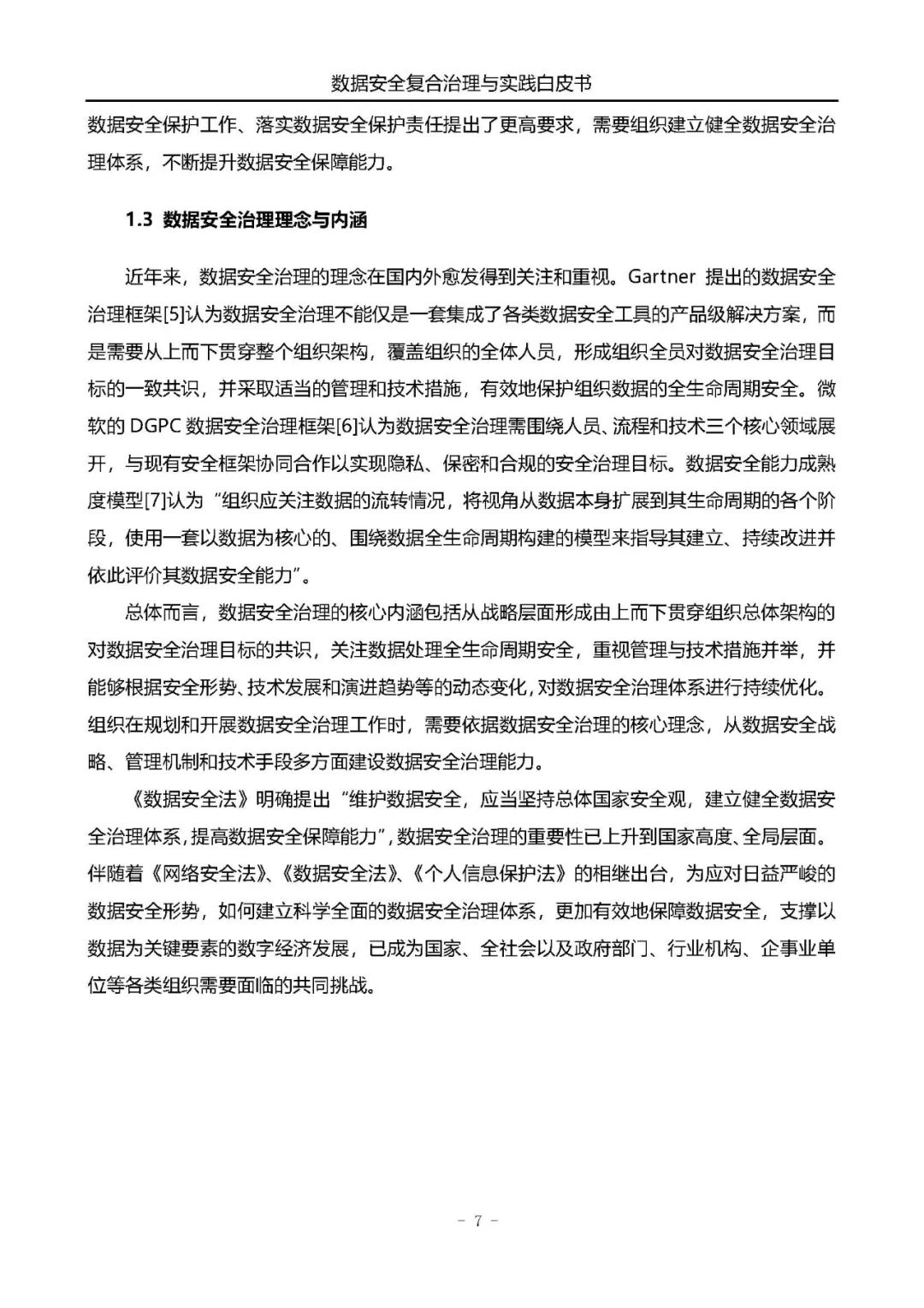 白皮书在对现阶段全球数据安全产业发展格局及治理态势进行充分调研与深度剖析的基础上,从引导企业建设与升级数据安全治理体系的视角出发,以“战略要位、实战牵引、全员参与、技术破局”为核心指导思想,强调数据安全的”复合“治理,即:对治理框架搭建中战略、管理和技术进行统筹规划与设计,形成基线设定、心智运营、原生设计、安全度量、可证溯源、红蓝对抗、测评认证等丰富的治理环节,强化治理过程的联动,将安全与业务复合、管理与技术复合,形成有机整体,充分发挥复合协同效能,构建体系化、准确量化、持续优化的数据安全复合治理模式。