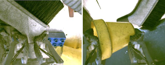 在左图中,机器臂正抓着刷子,背景中有一些物体(黄色杯子、蓝色塑料块)。在右图中,机器臂正抓着黄色杯子,背景中有刷子。如果左图是所需结果,则正确的奖励函数应该能够 “理解” 上面两张图片对应不同的物体