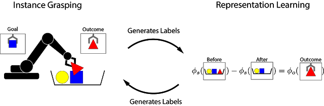 在这篇文章中,我们展示了机器人抓取技能如何生成用于学习对象中心表征的数据。然后,我们可以利用表征学习来 “引导” 机器人学习实例抓取等更复杂的技能,同时保留自主抓取系统的自我监督学习属性。