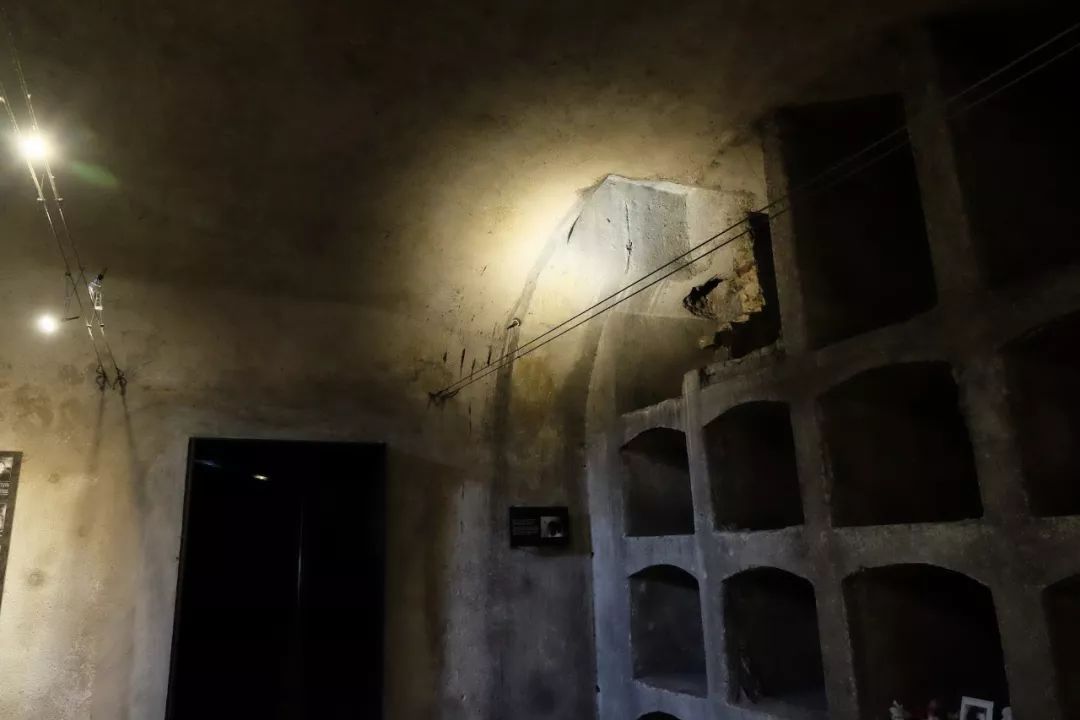 别动队员藏身的暗室如今专门照亮,光线昏暗时很难发现 摄于纪念博物馆