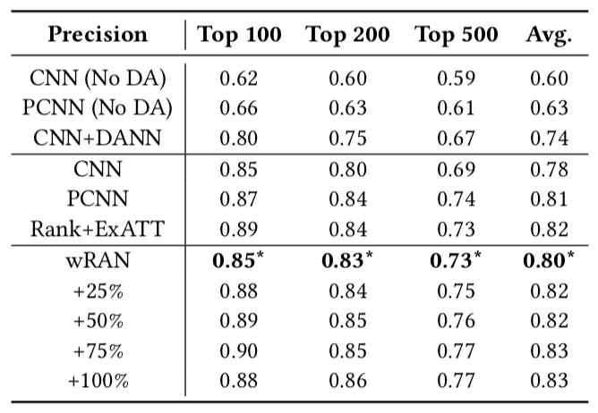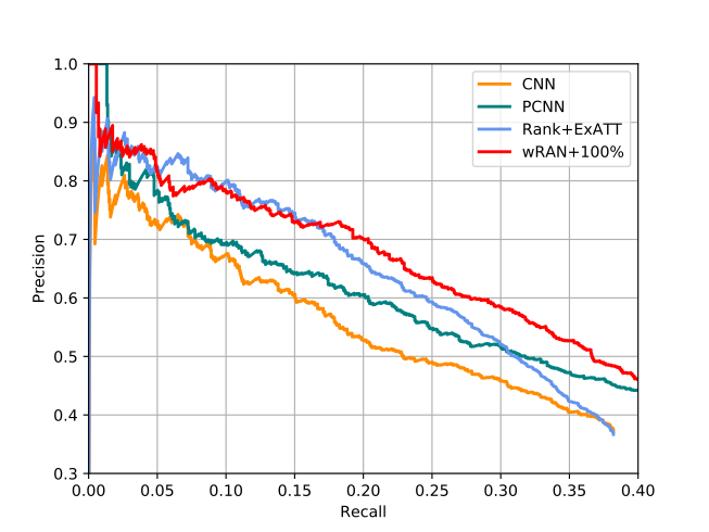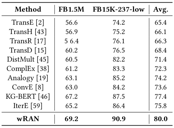 (4)实验表明,wRAN框架在低资源条件下的链接预测和关系抽取两个任务上均超过了目前最优模型的性能。