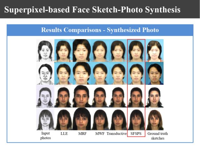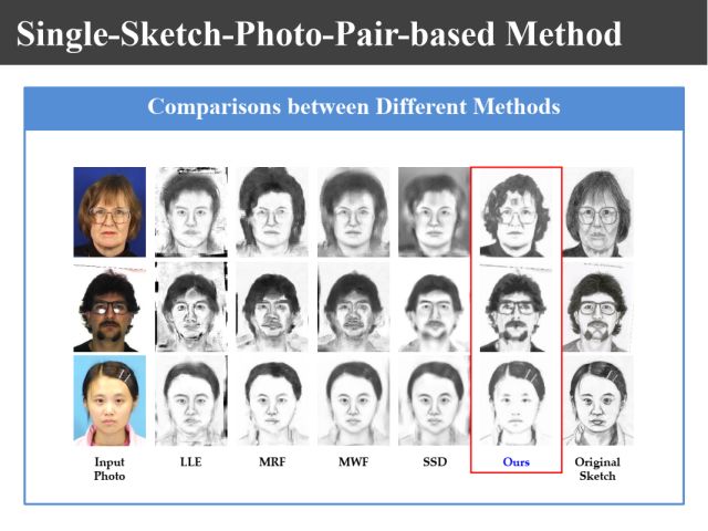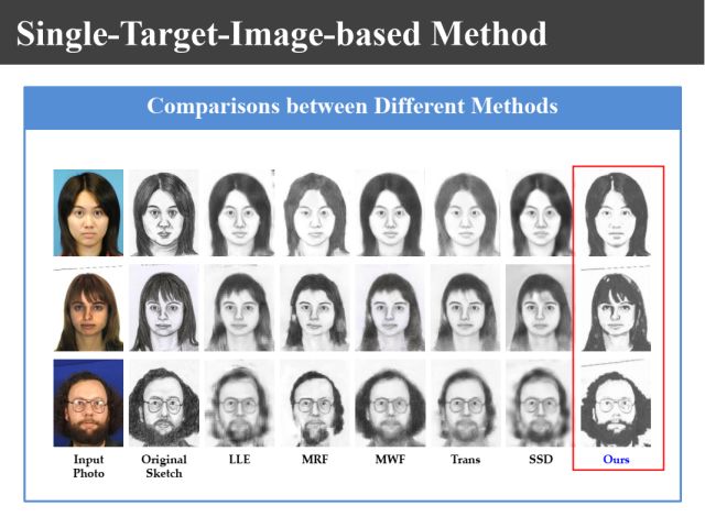 另外相关的数据库也非常难得,有的画像是看着照片画的,也有看一眼之后根据记忆画的,这种就更难了,真实应用的时候都是根据记忆来画的。现在我们找美院学生对不同照片由5个人来画了画像,这个画像已经在网上release。如果大家有兴趣的话,可以到上图的网站上去下载,可以去进行测试。