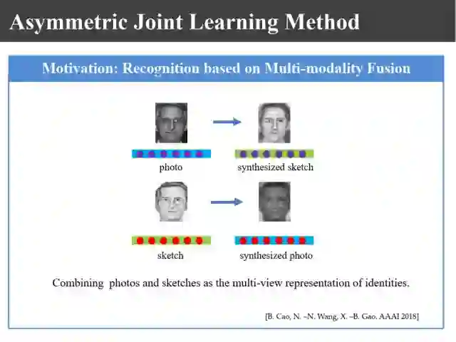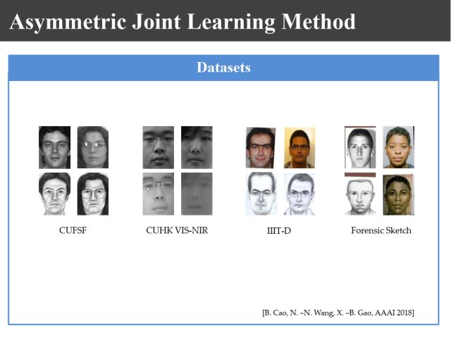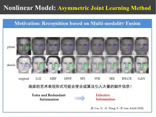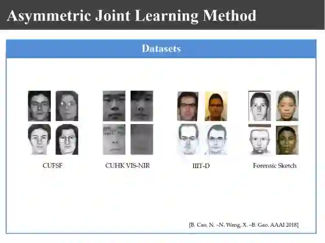 如上图,异质图像不仅仅是画像和照片、低分辨和高分辨、侧面到正面,还有其他的情况,还可以把这些方法进行不断推广。
