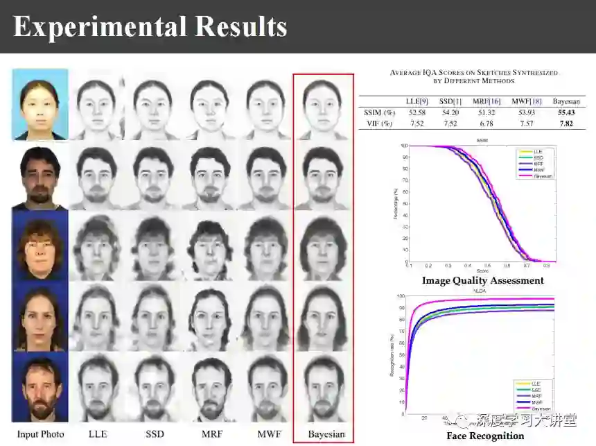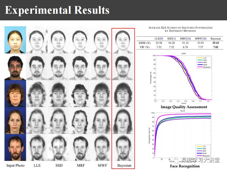 上图是由画像生成照片的识别结果,我们的方法识别率达到了99%。