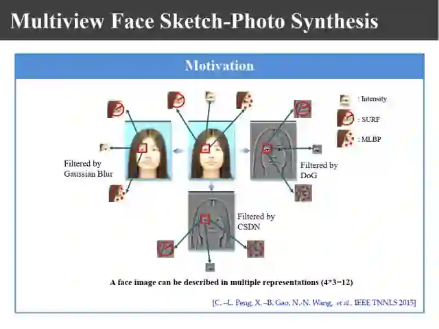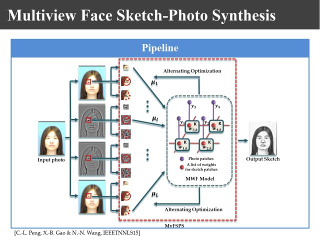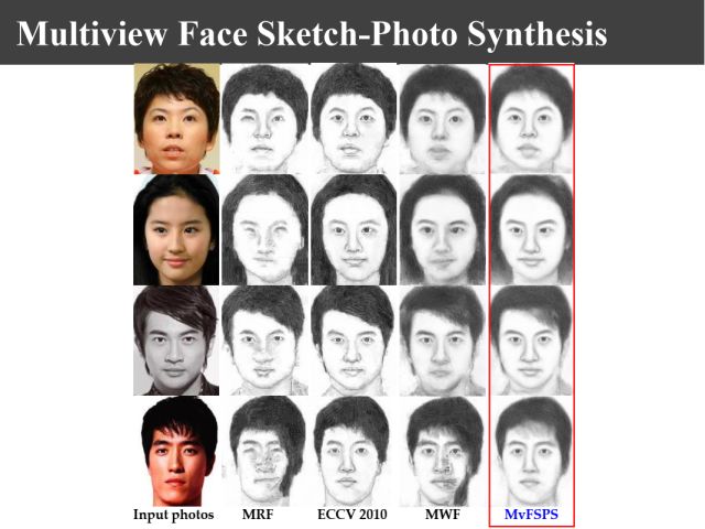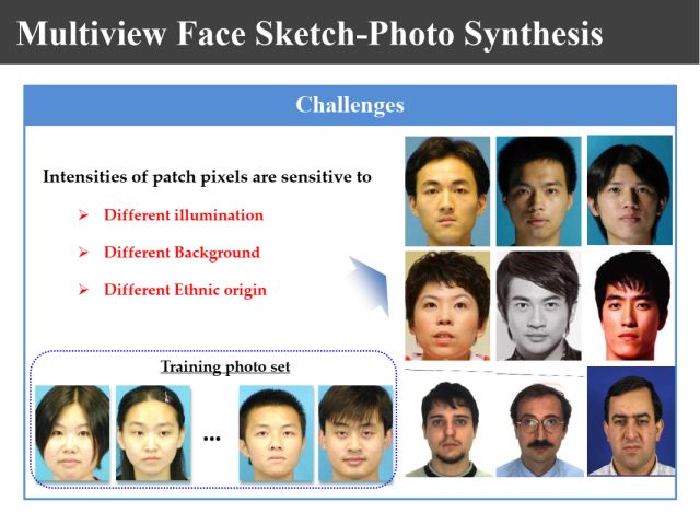 编者按:在机器视觉普及之前,传统模式识别系统都是基于高质量的输入图像的,要求待识别对象与图像采集设备之间很好的配合,只有这样才能获得较好的识别效果。随着图像采集设备的普及,获得目标图像的代价越来越小,由此而造成所采集到的图像质量参差不齐。在一些敏感的场合,还会出现拟识别对象与采集设备之间的不配合,造成无法获得对象的正面清晰图像,使得传统模式识别系统难以奏效。而通过引入人类智慧,利用画家经验,可以根据低质量的图像或图像序列,来生成素描画像,基于机器学习方法可以学习画像与图像之间的复杂映射关系,从而由画像合成出可用来进行模式识别的图像信息,进而取得良好的识别结果,我们可以称之为异质图像识别,或模式识别2.0。