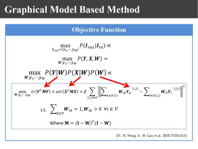 同样基于概率图模型构造似然项和先验概率项,最后得到了上图所示的联合概率密度的形式。为了避免平凡解,我们还加入了一项正则项。