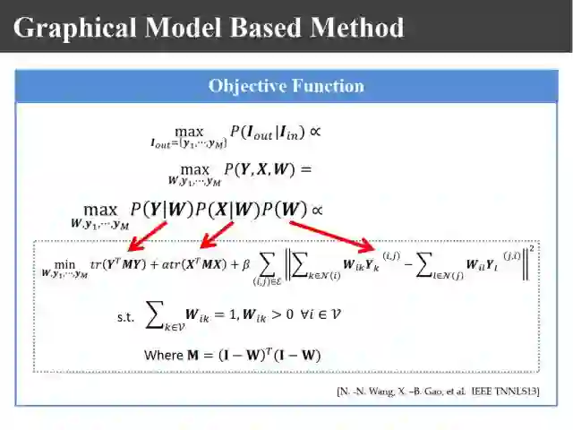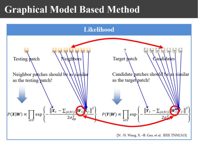 整个过程里面有两个部分需要优化,一个是对邻域块的搜索,一个是进行权值的计算。针对这两个模块,前面的工作只是对权值计算利用了概率图模型,而邻域图像块的搜寻同样可以利用概率图模型来优化。