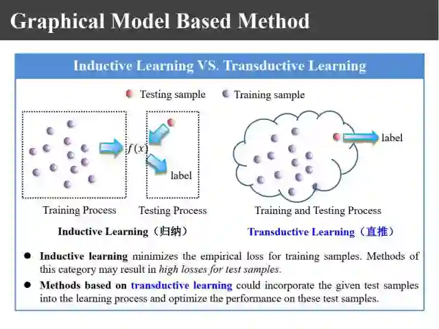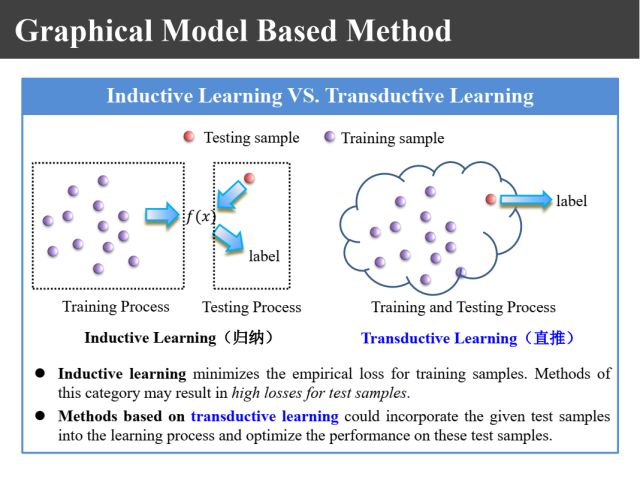 这种学习算法是我们2014年发表的,叫做基于直推式的学习,把训练样本和测试样本放在一起,原来归纳式的学习方法相当于在训练样本上做的误差很小,但是在测试样本不能保证误差也很小,直推式的方法可以保证在测试样本上误差也是非常小的。