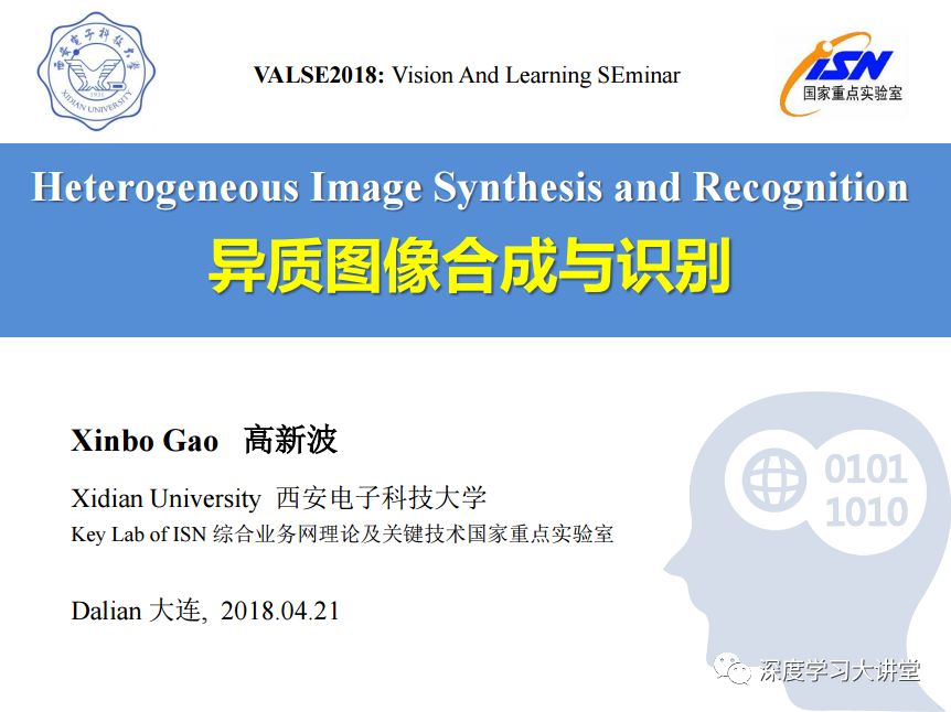我陪伴VALSE度过了七年之痒,今年就坚持到八年抗战了。今天可能是我最后一次在VALSE上做学术交流,所以我希望能系统总结一下我们团队这八年以来在异质图像合成和识别方面的工作。