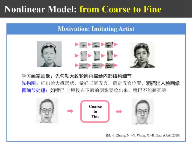 另外我们基于画家画像先画轮廓再画细节的做法,还提出了一种上图中由粗到细的合成方法。