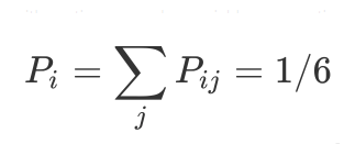 如果忽略第二个骰子的数字,那么得到第一个骰子的某个结果(比如 6)的概率为: