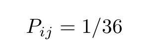 现在扔出两个骰子,得到 36 对结果中任意一个的联合概率为: