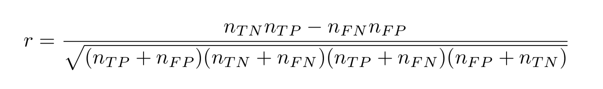 对于二元分类器而言,我还推荐皮尔森相关系数(Pearson correlation coefficient):