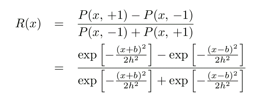 即一对大小相同的一维高斯函数的决策函数是一个双曲正切函数。